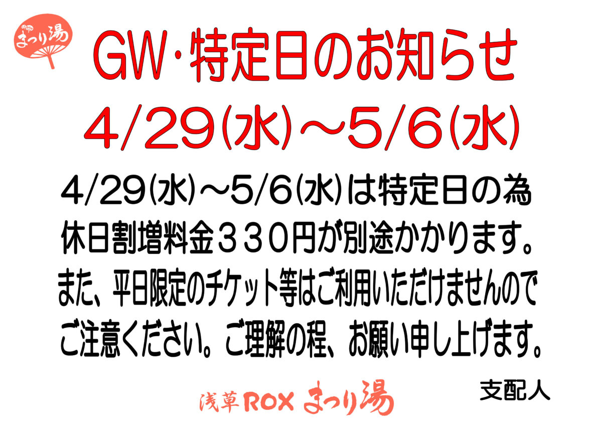 GW特定日のお知らせ