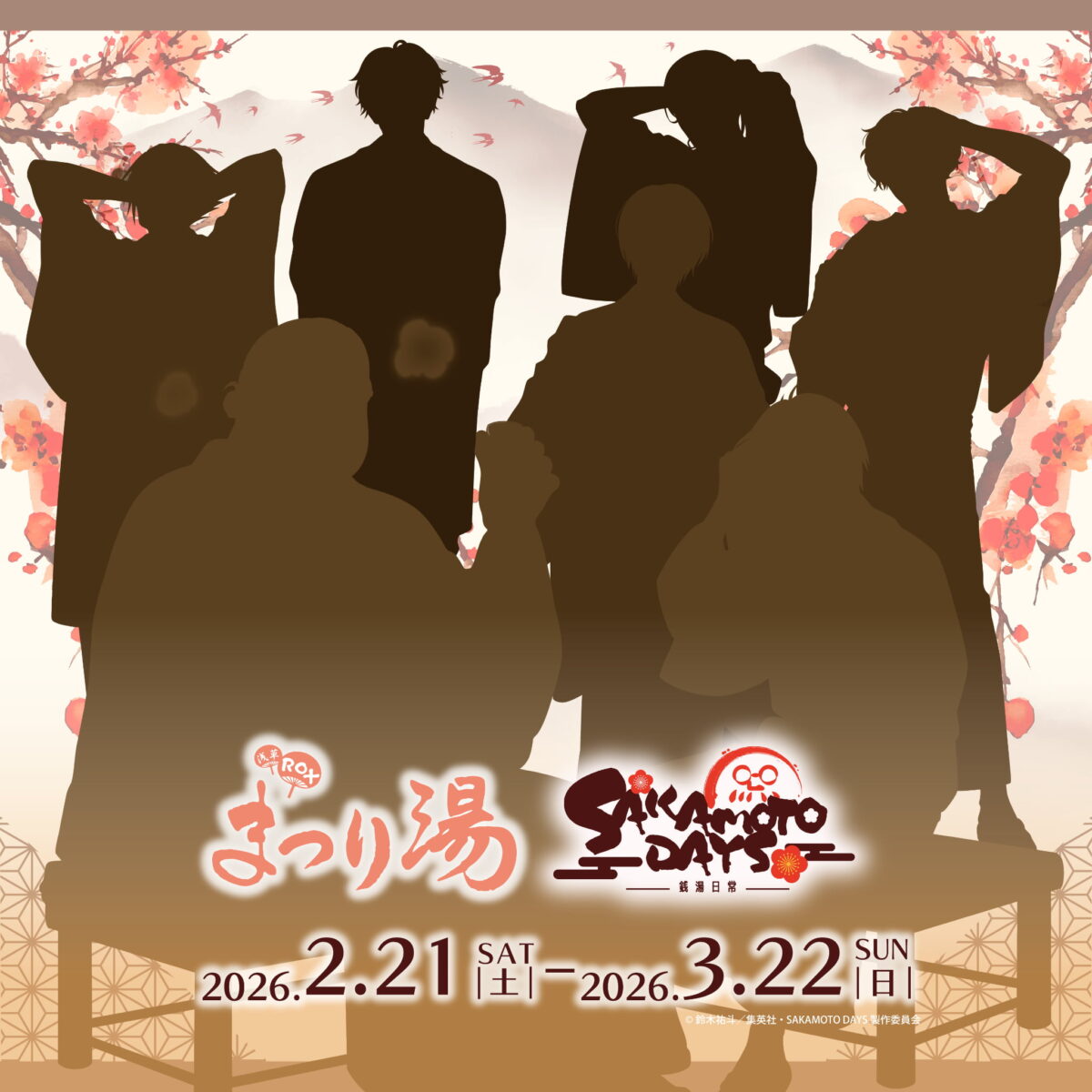 .。♨️TVアニメ「#SAKAMOTODAYS」×浅草ROXまつり湯♨️。. 2026年01月09日 #サカモトデイズ と(@SAKAMOTODAYS_PR ) #まつり湯 のコラボイベント #銭湯日常 開催決定❗️ まつり湯で体を癒す坂本さんたちのシルエットを公開🌟 イベントの詳細は後日発表いたします! 引き続きまつり湯公式アカウントをチェック👀✨