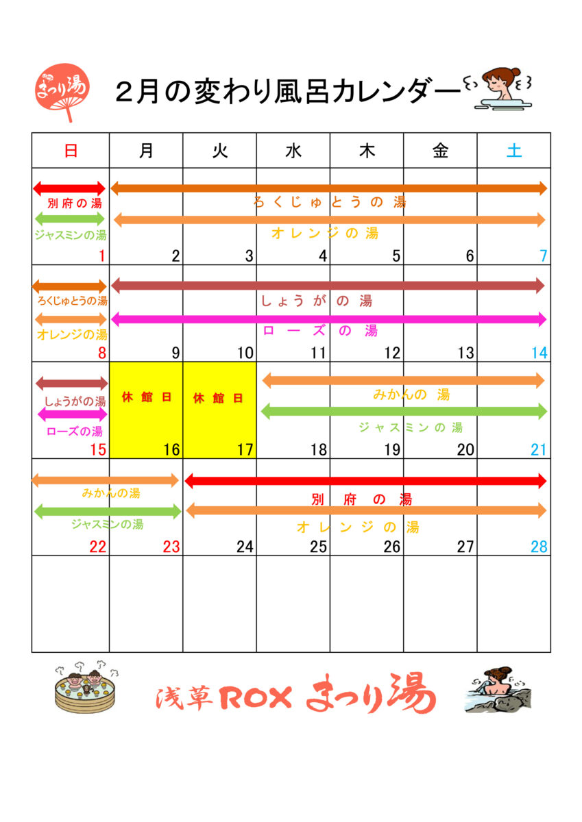 2月の変わり風呂カレンダー